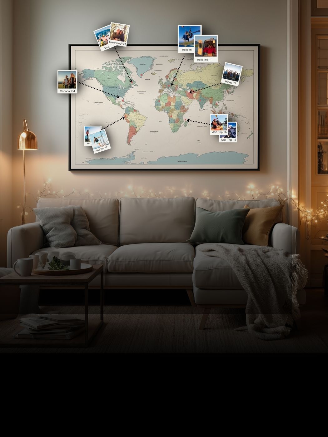 The first world map that connects your physical and digital memories and brings back the magic of photo albums in a modern, beautiful way.