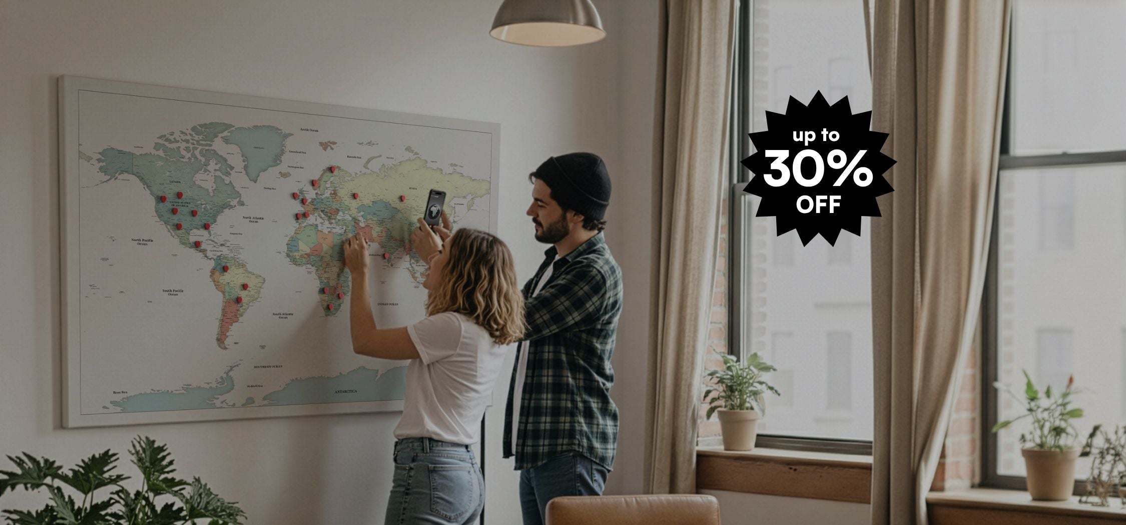 Memoried turns your travels into timeless art. Every pin tells your story — your adventures, your milestones, your memories. Finally, wall art that means something.